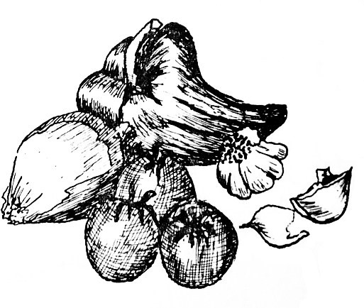 | INGREDIENTES: 1/ 8 de aceite, 2 ajos, 1/2 cebollas, 5 ó 6 tomates, guindas verdes, sal, agua y pan. PREPARACIÓN: Freír en aceite ajo y cebolla. Cuando estén dorados, se añaden trocitos de guindas verdes, y a continuación bastante tomate. Una vez frito, se añade el agua y la sal. Cuando hierva unos segundos, se vierte el caldo sobre las rebanadas finas de pan. |