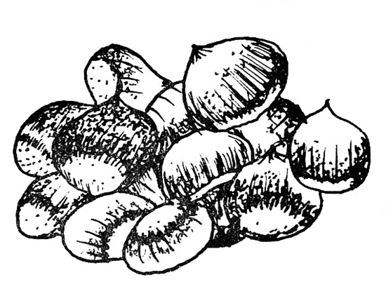 | INGREDIENTES: Azúcar, leche, anís en grano, una pringada, aceite y agua. PREPARACIÓN: Se cuecen las castañas con agua hasta que estén blandas. Se le echa machados, la pringada, el anís y unas castañas. Una vez machado, se le echa dos cucharadas de aceite, la leche y el azúcar. Se deja hervir durante unos minutos y se sirve. |